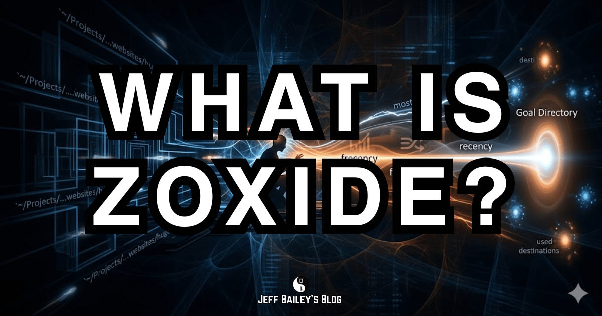 Instead of cd ~/Projects/websites/jeffbaileyblog/hugo, I type z hugo. Zoxide remembers that I live in that directory most days, and it takes me there.