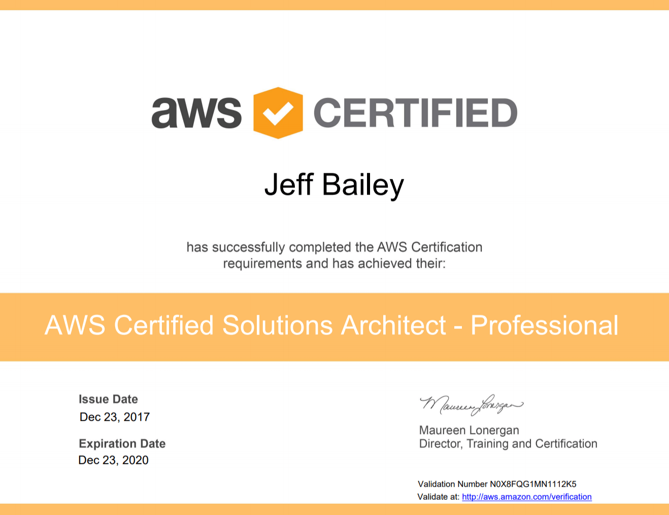 - AWS Certified Solutions Architect – Professional — June 2017 – June 2020